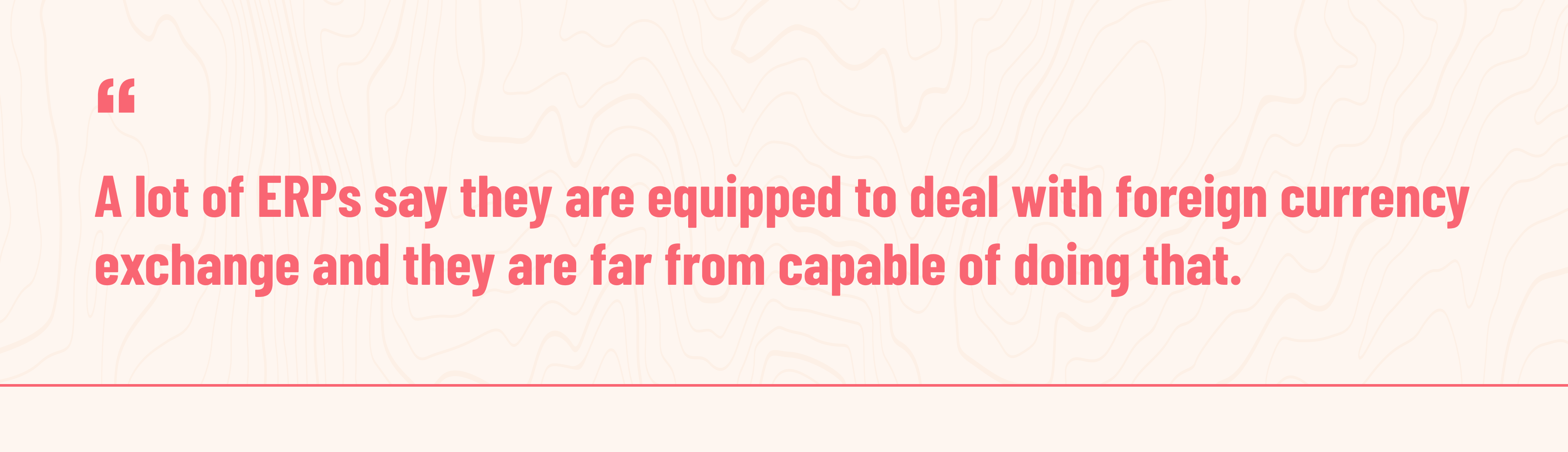 “A lot of ERPs say they are equipped to deal with foreign currency exchange and they are far from capable of doing that. They just have one line that says ‘wins and losses’ for the exchange rate, but that also has a special taxation in some geographies.”