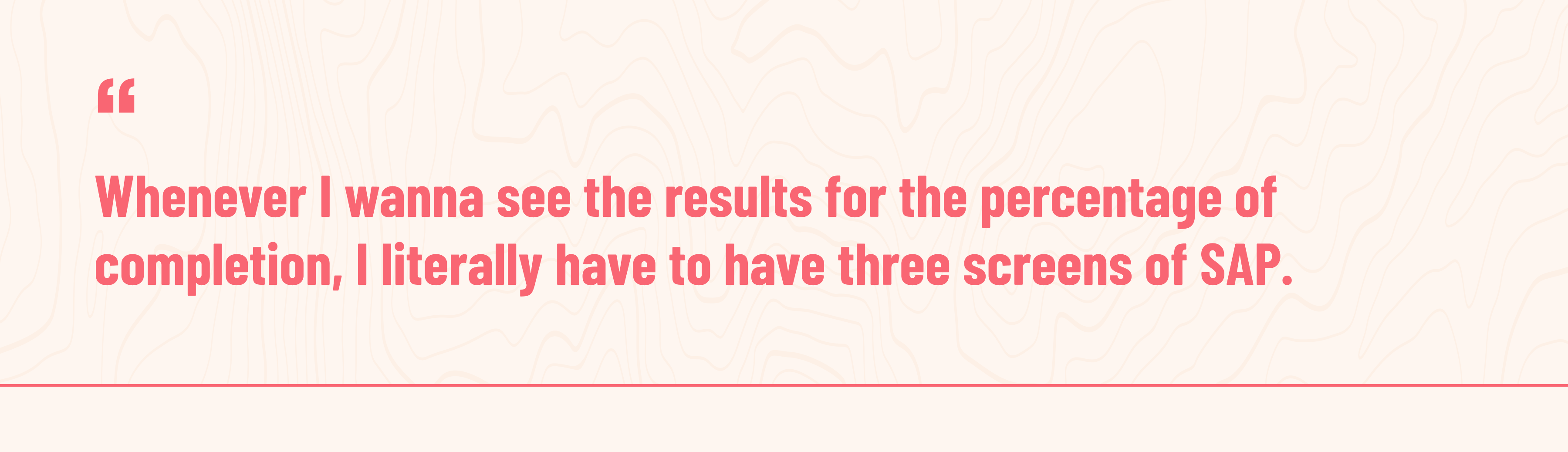“Whenever I wanna see the results for the percentage of completion, I literally have to have three screens of SAP at the same time to make them make sense. Why don't I have a single view of my P&L?”