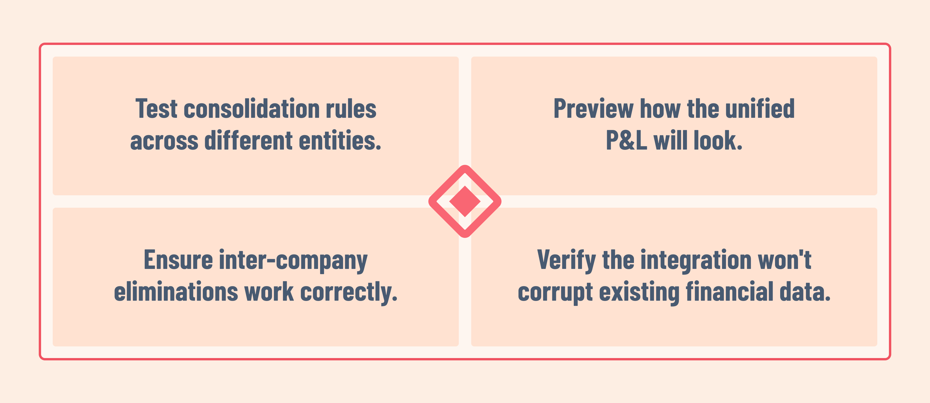 Imagine you’ve acquired a company and your team needs to integrate its books. Instead of waiting months for IT to test and implement the changes, sandboxing allows your team to: