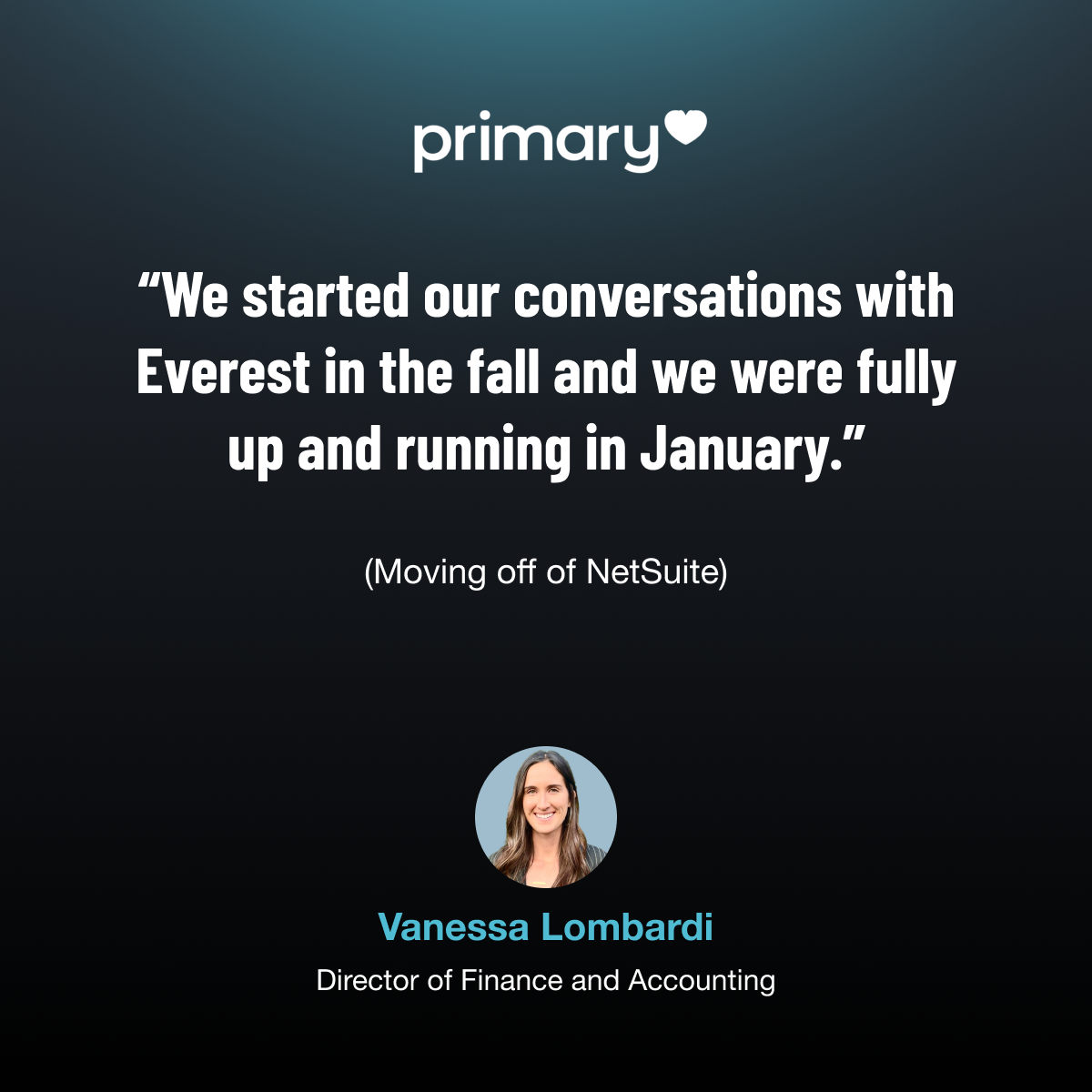 Primary Health purchased Everest in the winter and was up and running by January—a full NetSuite migration.