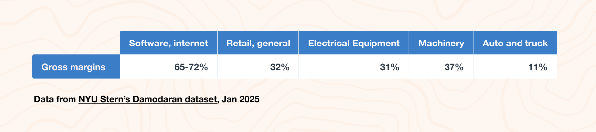 What separates software providers is, primarily, two things: the low marginal cost of selling additional units and the recurring subscription revenue. That is, whether you sell one or one thousand instances, the delivery cost is nearly the same, while customers owe you consistently and predictably.